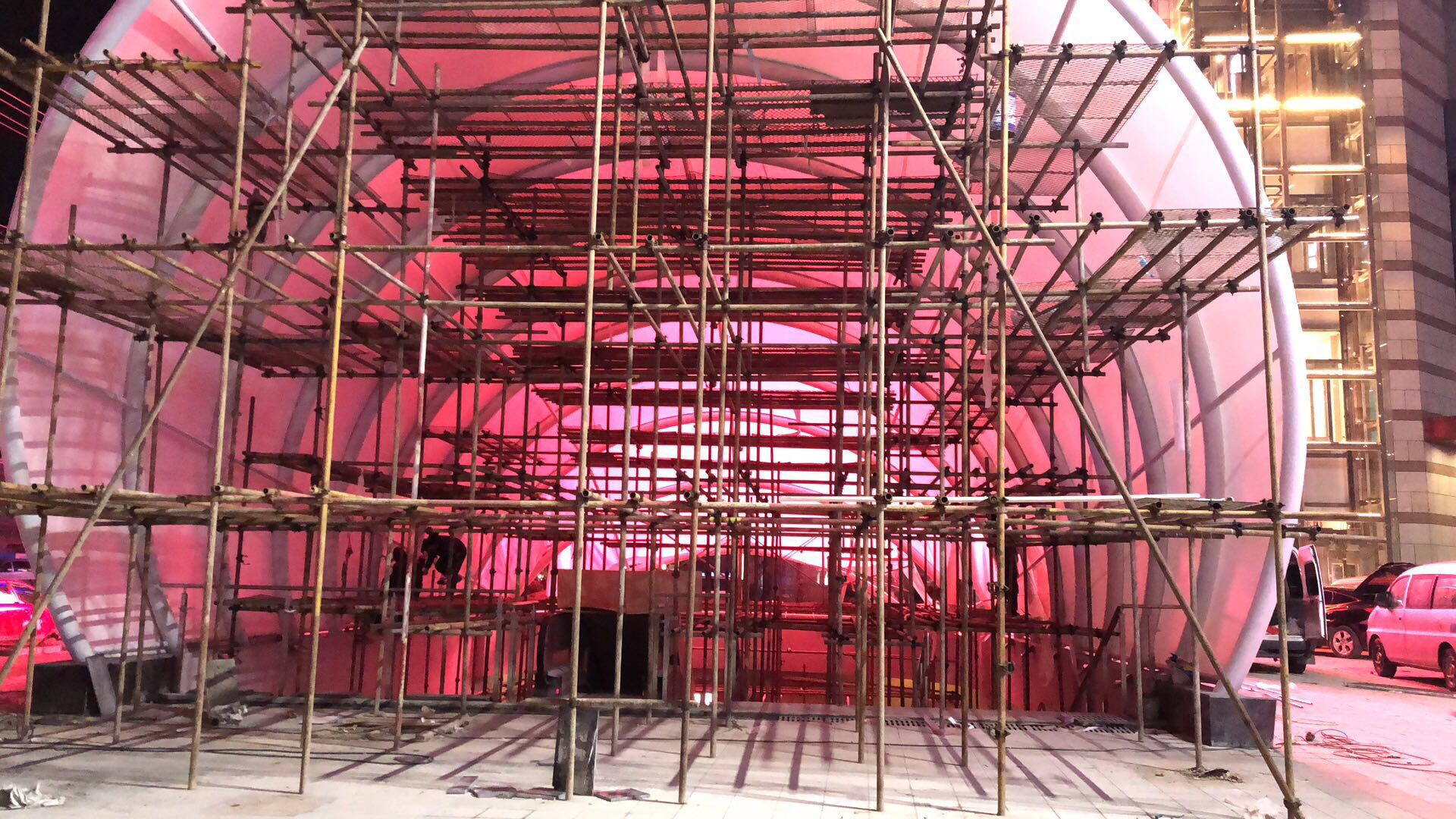 一、膜材裁剪、包裝及運輸索膜結構體形通常都較為復雜,各種角度變化較多,且加工精度要求非常高。在制作過程中要加強質量管理,保證制作精度。在膜結構制作前,需要對工程所用膜材及配件按設計和規范要求進行材質和力學性能檢驗,如膜材的雙向拉伸試驗。膜材加工制作要嚴格按設計圖紙在專業車間由專業人員制作。由于索膜結構通常均為空間曲面,裁剪就是用平面膜材表示空間曲面。這種用平面膜材擬合空間曲面的方法必然存在誤差,所以裁剪人員在膜材裁剪加工過程中加入一些補救措施是相當必要的。對已裁剪的膜片要分別進行尺寸復測和編號,并詳細紀錄實測偏差值。裁剪作業過程中應盡量避免膜體折疊和彎曲,以免膜體產生彎曲和折疊損傷而使膜面褶皺,影響建筑美觀。膜片下料完成后再根據排水方向和膜片連接節點確定熱熔合方案。在正式熱合加工前,要進行焊接試驗,確保焊接處強度不低于母材強度。經檢驗合格的成品膜體,在包裝前,應根據膜體特性、施工方案等確定完善的包裝方案。如聚四氟乙烯為涂層的是玻璃纖維為基層的膜材料可以以卷的方式包裝,其中卷芯直徑不得小于100mm,對于無法卷成筒的膜體可以在膜體內襯填軟質填充物,然后折疊包裝。包裝完成后,在膜體外包裝上標記包裝內容、使用部位及膜體折疊與展開方向。在膜材運輸過程中要盡量避免重壓、彎折和損壞。同時在運輸時也要充分考慮安裝次序,盡量將膜體一次運送到位,避免膜體在場內的二次運輸,減少膜體受損的機會。膜材加工制作工藝漉程為:膜裁剪出圖→審圖→膜加工技術交底→檢驗→放樣→裁剪→膜材預拼裝→膜材熱熔合→邊緣加工→成型尺寸復核→清洗→包裝→出廠。
