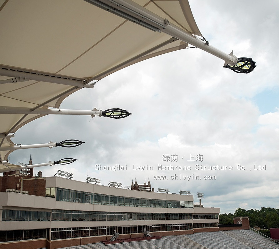 3. 永久性性膜材,使用年限30年以上。對太陽能的反射率高,所以熱吸收量很少。即使在夏季炎熱的日光的照射下室內也不會受太大影響。正是因為這種劃時代性的膜材料的發明,才使膜結構建筑從人們想象中的帳篷或臨時性建筑發展成現代化的永久性建筑。